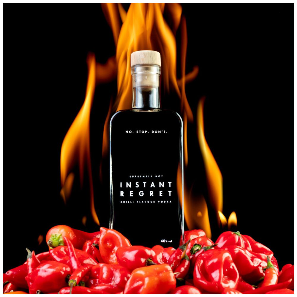 Instant Regret Vodka Chili - l'unica vodka in cui il nome dice tutto. Salute, ma attenzione: questa vodka potrebbe cambiare le vostre papille gustative per sempre!