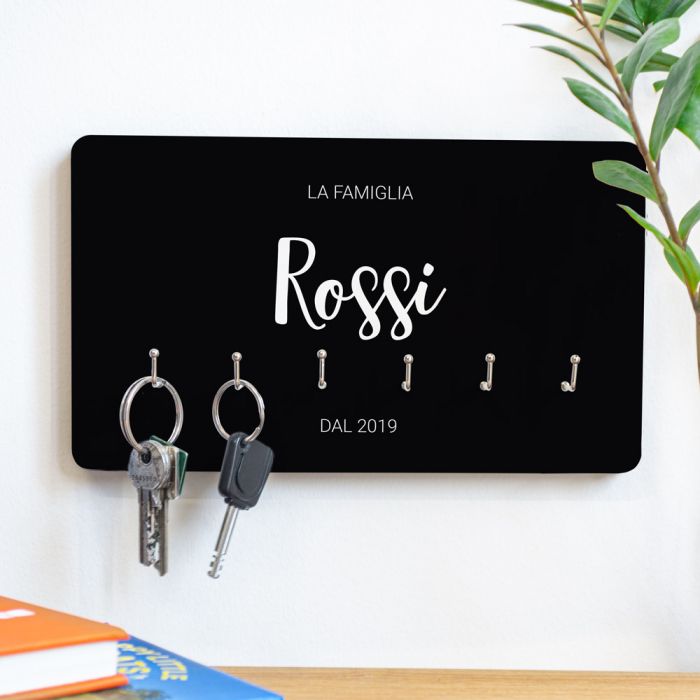 Appartenete, come tutte le famiglie, a una comunità più o meno organizzata. E credeteci, questo portachiavi da parete personalizzato potrebbe cambiarti la vita! Contiene 6 ganci in modo che tutti possano appendere le proprie chiavi allo stesso portachiavi. Così, le chiavi non andranno perse tra tasche varie di cappotti, fondi di borse o portaoggetti sparsi per casa. E se possedete un numero esorbitante di chiavi, potete sempre prendere un portachiavi da parete per ogni membro della famiglia e scriverci sopra il suo nome, perché il testo è 100% personalizzabile! E ognuno avrà il proprio portachiavi!