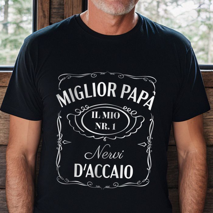 Questa maglietta personalizzata in stile whisky è il regalo perfetto per la Festa del Papà o per gli amanti del buon whisky! Decidi tu cosa scrivere – una frase divertente, un omaggio al tuo whisky preferito o un messaggio speciale che solo voi due conoscete.